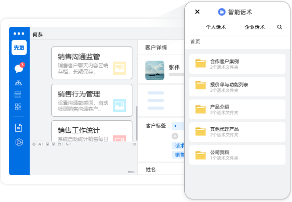 设置沟通敏感词,自动检测销售沟通客户过程中的不当话术,自动统计、考核;销售删除客户好友、超时回复、辱骂客户等敏感动作,实时监控,规范销售行为