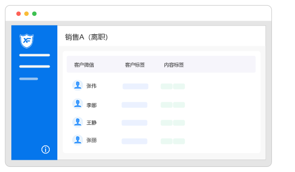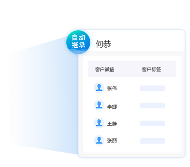 销售离职时,企业可将其销售的企业微信有效客户分配给指定销售继承,无须原销售同意,无须客户确认,自动同步沟通记录和客户资料。企业可直接将在职销售的客户分配给指定销售继承,直接转移好友关系,无须二次添加,无须原销售同意。