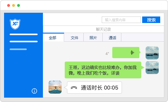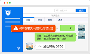 销售和客户的聊天内容(文字,语音,视频,文件,语音通话)自动上传,永久保存;后台可以实时查看,检索,导出。