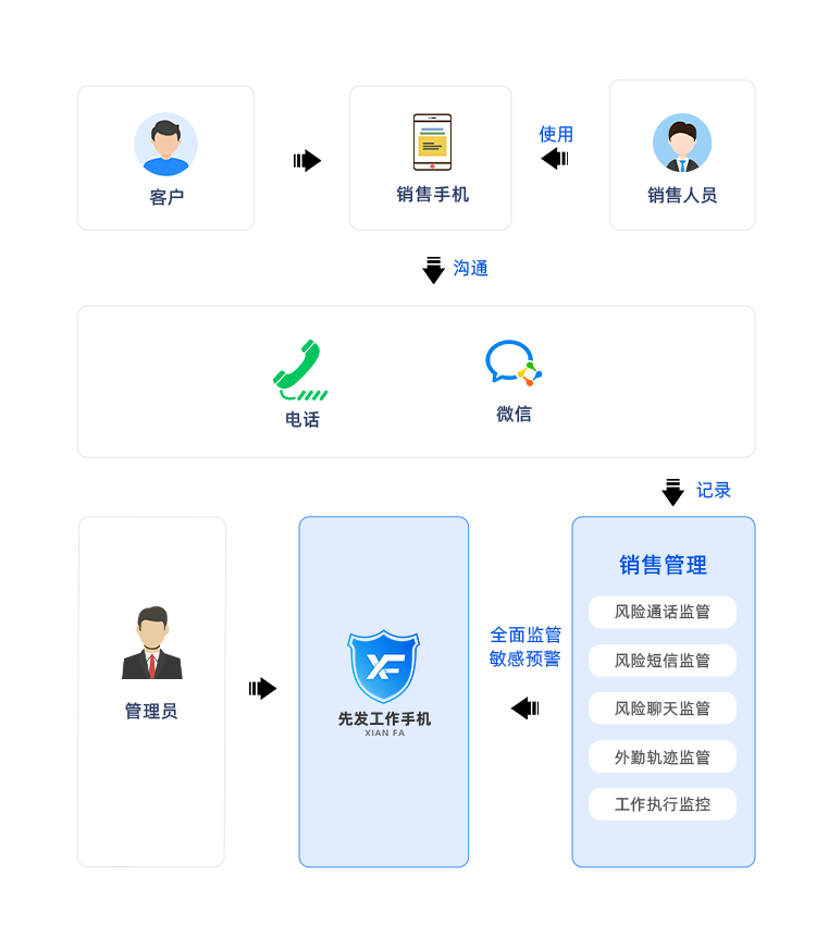 电话,短信,微信多渠道沟通客户,企业难以监管所有环节,特别是对微信的监管缺乏,导致飞单,辱骂客户。