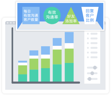 系统分析销售的日常沟通数据,自动计算销售工作质量:每日有效沟通客户数量,有效沟通率,好友添加率,回复客户比例。
